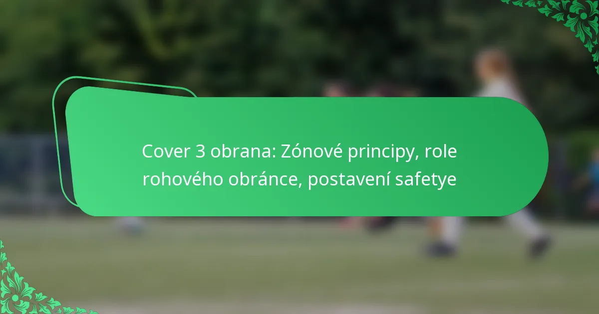 Defenzivní schéma Cover 3 je strategický zónový pokrytí, které dělí hřiště na tři hluboké zóny, přičemž se primárně zaměřuje na obranu proti pasovým akcím. Tento systém spoléhá na dva cornerbacky a jednoho safetya, kteří pokrývají hluboké trasy, zatímco ostatní obránci se soustředí na krátké a střední oblasti. Cornerbackové jsou nezbytní pro udržení integrity zóny a ochranu proti hlubokým pasům, zatímco safeties se umisťují hluboko, aby efektivně reagovali na vzdušné i pozemní hrozby.