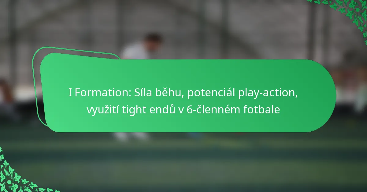 Formace I v 6-členném fotbale je strategické uspořádání, které zdůrazňuje silný běh a příležitosti pro play-action. Tato formace obsahuje fullbacka a tailbacka postavené za quarterbackem, což vytváří vyvážený útok, který může efektivně využívat jak běžecké, tak pasové hry.