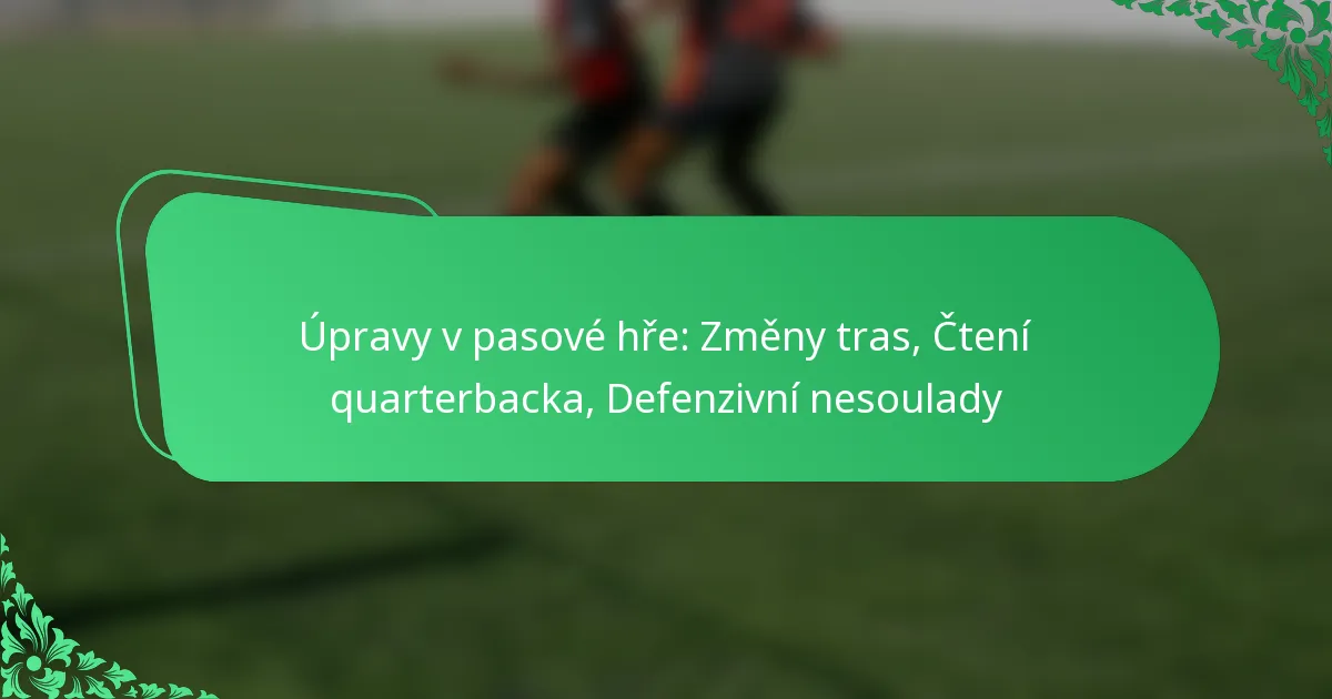 Úpravy v pasové hře zahrnují strategické změny tras, rozhodování quarterbacka a identifikaci defenzivních nesouladů. Tyto komponenty spolupracují na zvýšení ofenzivní efektivity a využití slabin v obraně.