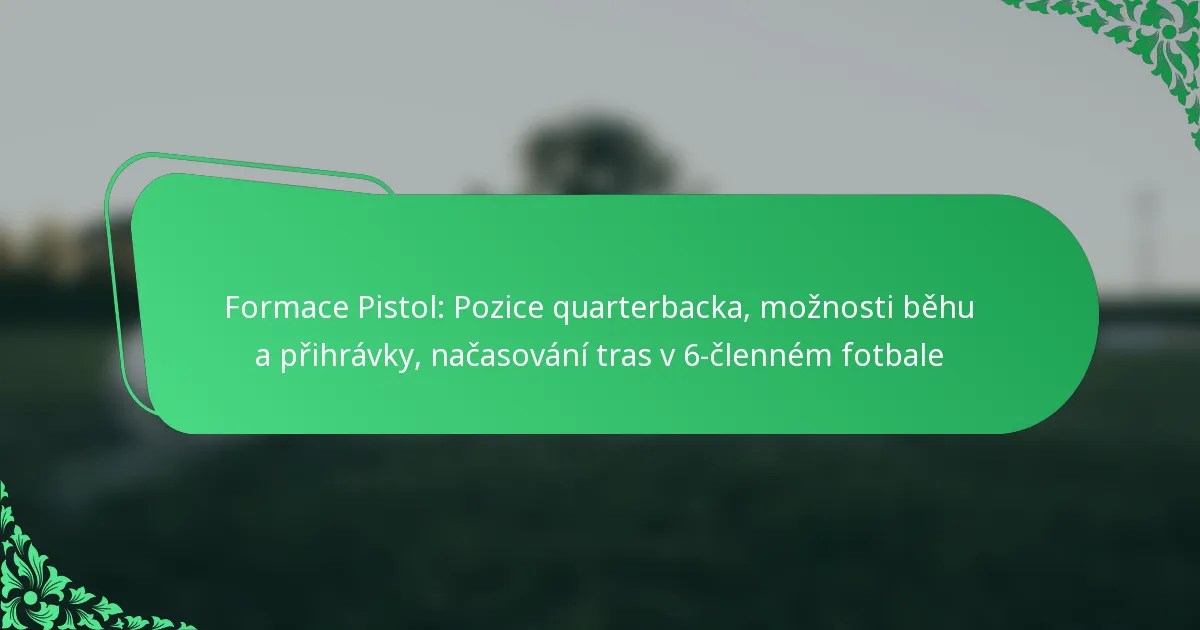 Formace Pistol v 6-členném fotbale je strategické uspořádání, kde se quarterback umisťuje několik yardů za střed, což umožňuje jak běhové, tak pasové hry. Toto uspořádání zvyšuje všestrannost ofenzivy, což umožňuje rychlé rozhodování a dynamické provádění her.